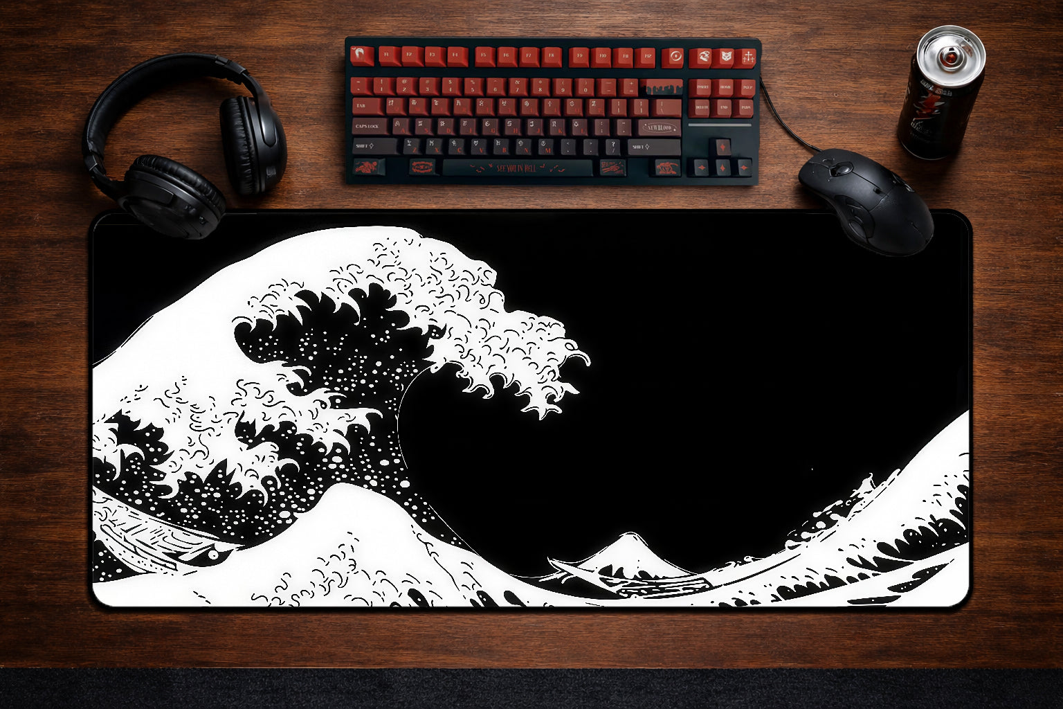 - Striking High-Contrast Art: A bold "Midnight" reimagining of the Great Wave, designed to make your setup pop with dramatic flair.
