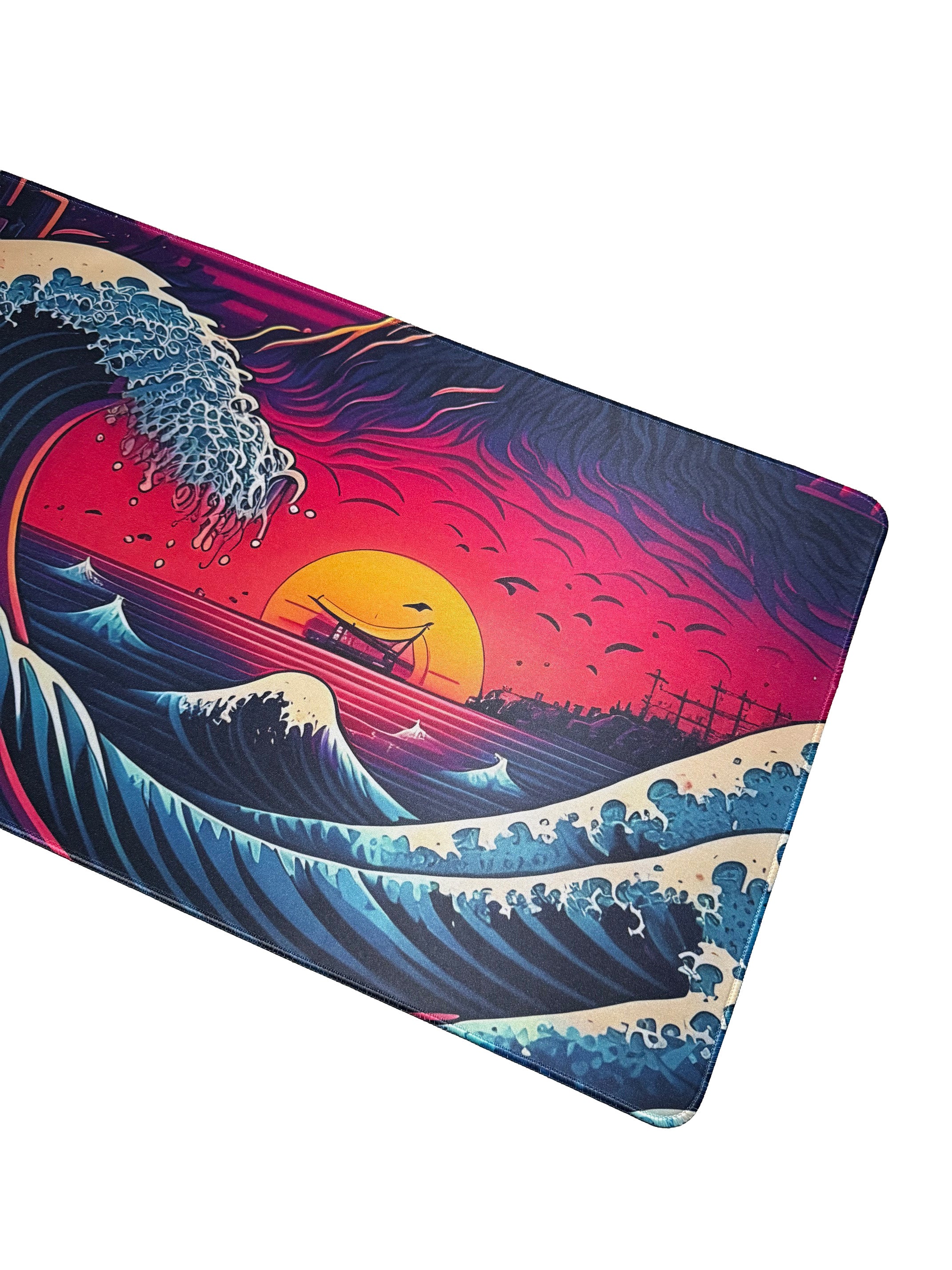 Breng kunst en functionaliteit samen met de Kanagawa Wave: Neon Horizon muismat. Geïnspireerd door de iconische "Grote Golf van Kanagawa" en verrijkt met levendige neonkleuren, biedt deze muismat een adembenemend design dat perfect past bij elke gaming- of werkplek.